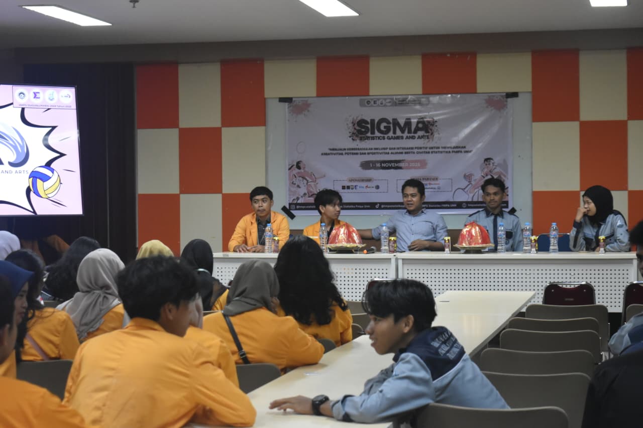 Himpunan Mahasiswa Program Studi (HMPS) Statistika Fakultas Matematika dan IPA (FMIPA) Universitas Negeri Makassar (UNM) kembali menyelenggarakan Statistics Games and Arts (SIGMA) 2025 sebagai salah satu program strategis yang berfungsi memperkuat interaksi, kreativitas, dan sportivitas di lingkungan mahasiswa serta alumni Statistika. Kegiatan ini menjadi agenda tahunan yang selalu dinantikan karena bukan hanya menghadirkan kompetisi, tetapi juga membangun ruang kebersamaan yang inklusif dan mendukung terciptanya suasana akademik yang harmonis.